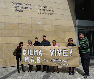 Ostiralean Ekozinemaldia hasi zen, eta egun bertan MABeko ekintzailea zen Dilma Ferreira (Brasilgo Urtegiek Kaltetutako Mugimendua), haren senarra eta beste pertsona bat eraildak izan zirela jakin genuen. Gaur, Donostiako UPV-EHUko Ingeniaritzako eskolan izan genuen Ekozinemaldiaren saioan gogoratu izan ditugu, eta baita ere El Salvadoreko meatzaritzaren aurkako borroka horretan eraildako beste 5ak, Nicinha, Berta eta Amalurraren alde eroritako guztiak. Aldi berean MAB erakundearekin eta haien familiekin gure elkartasuna adierazten dugu eta salatzen dugu kaltetutako eta antolatutako pertsonen aurkako errepresio kasu berri hau eta ikaratzeko saiakera, eta justizia aldarrikatzen dugu.